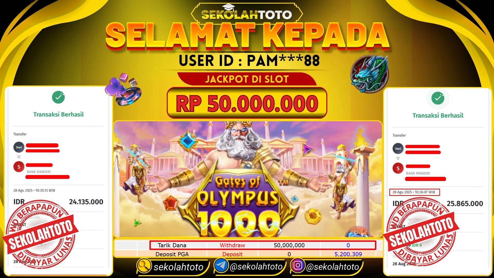 BUKTI PEMBAYARAN JACKPOT PRAGMATIC PLAY 28 Agustus 2025 Posted by kepsektoto GATES OF OLYMPUS X1000 KAMIS , 28 AGUSTUS 2025 RP 50,000,000,- Selamat Kepada Pemenang. Salam JP Updated: 28 Agustus 2025 at 12:24 ◀ BUKTI PEMBAYARAN JACKPOT PRAGMATIC PLAY BUKTI PEMBAYARAN JACKPOT PGSOFT ▶