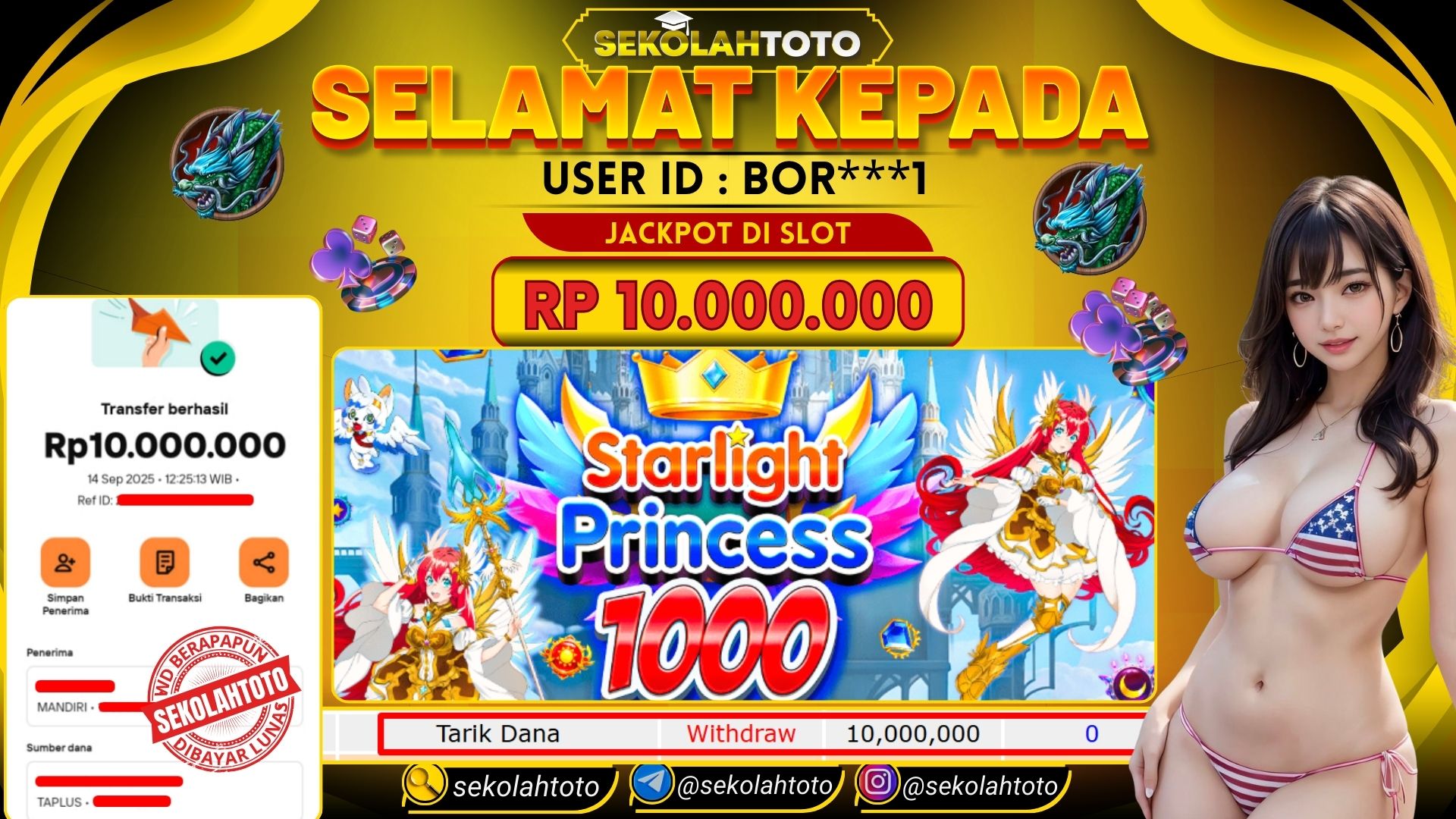 BUKTI PEMBAYARAN JACKPOT PRGAMATIC PLAY 14 September 2025 Posted by kepsektoto STARLIGHT PRINCESS 1000 MINGGU 14 SEPTEMBER 2025 RP 10,000,000,- Selamat Kepada Pemenang. Salam JP Updated: 14 September 2025 at 12:45 ◀ BUKTI PEMBAYARAN JACKPOT PG SOFT BUKTI PEMBAYARAN JACKPOT PRGAMATIC PLAY ▶