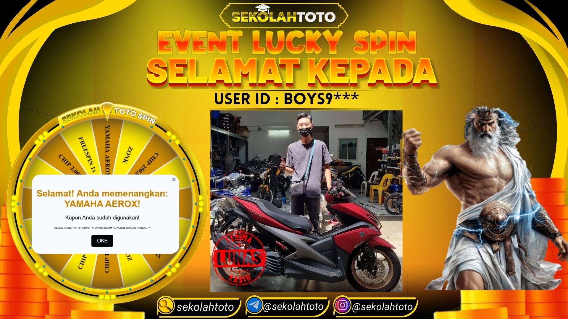 BUKTI HADIAH KEMENANGAN EVENT LUCKY SPIN 16 September 2025 Posted by kepsektoto EVENT LUCKY SPIN SELASA, 16 SEPTEMBER 2025 HADIAH YAHAMA AEROX Selamat Kepada Pemenang. Updated: 16 September 2025 at 15:43 ◀ BUKTI PEMBAYARAN JACKPOT IDNLIVE BUKTI PEMBAYARAN JACKPOT PRAGMATIC LIVE DEALER ▶