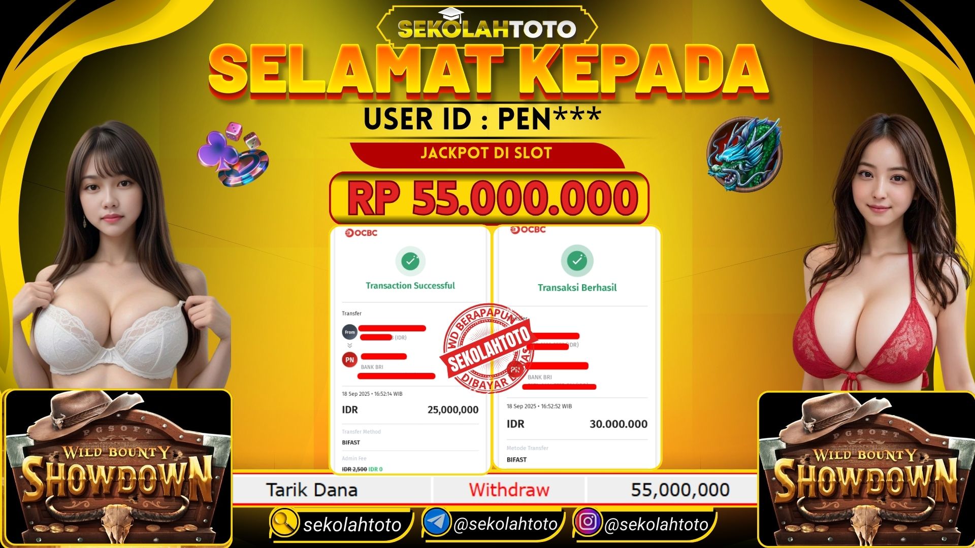BUKTI PEMBAYARAN JACKPOT PG SOFT 18 September 2025 Posted by kepsektoto WILD BOUNTY SHOWDOWN KAMIS 18 SEPTEMBER 2025 RP 55,000,000,- Selamat Kepada Pemenang. Salam JP Updated: 18 September 2025 at 17:14 ◀ BUKTI PEMBAYARAN JACKPOT PRAGMATIC PLAY Prediksi Togel Bullseye Pools Hari Ini ▶