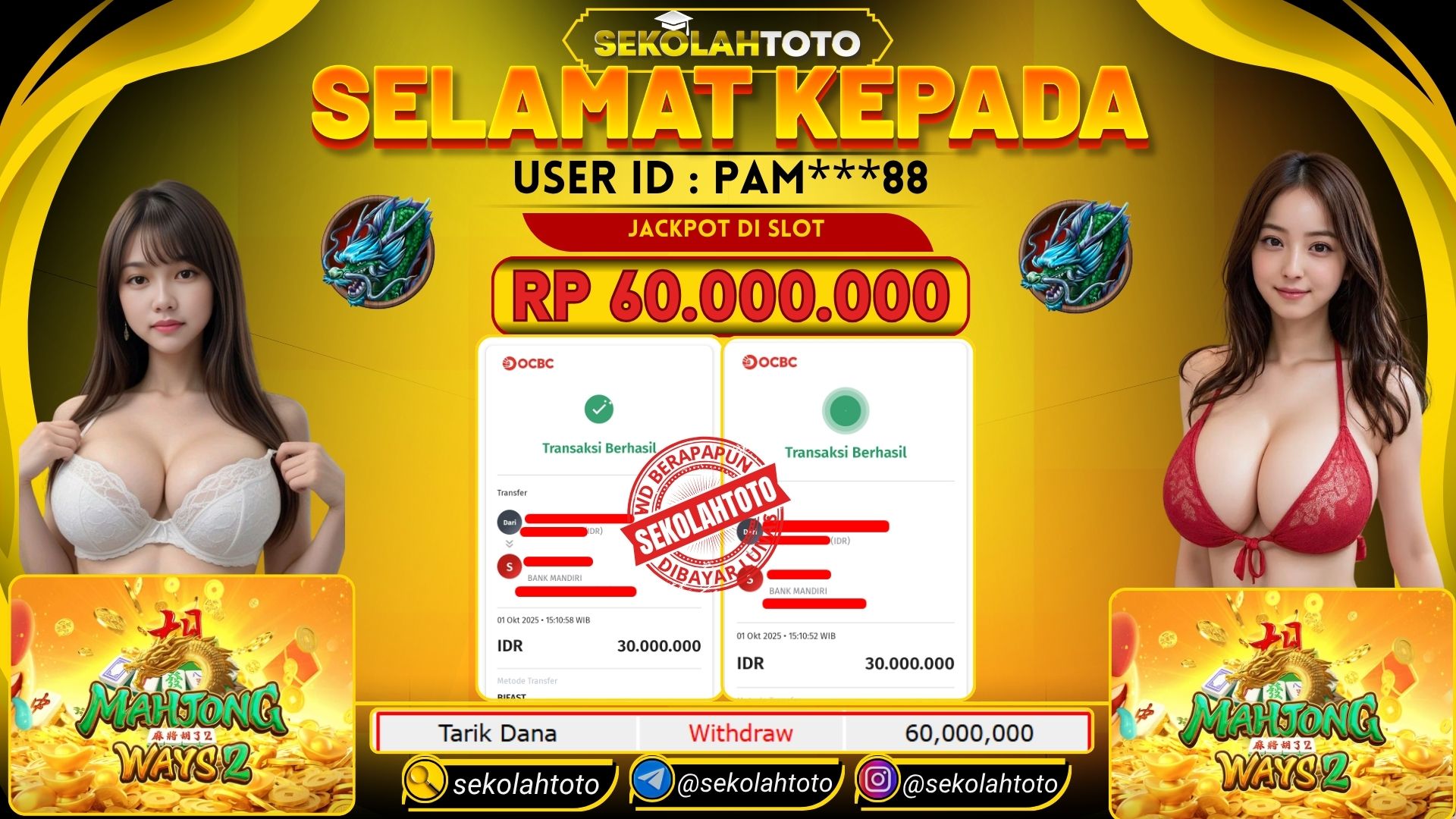 BUKTI PEMBAYARAN JACKPOT PG SOFT 1 Oktober 2025 Posted by kepsektoto MAHJONG WAYS 2 RABU , 1 OKTOBER 2025 RP 60,000,000,- Selamat Kepada Pemenang. Salam JP Updated: 1 Oktober 2025 at 16:05 ◀ BUKTI PEMBAYARAN JACKPOT PRAGMATIC PLAY Prediksi Togel Bullseye Pools Hari Ini ▶
