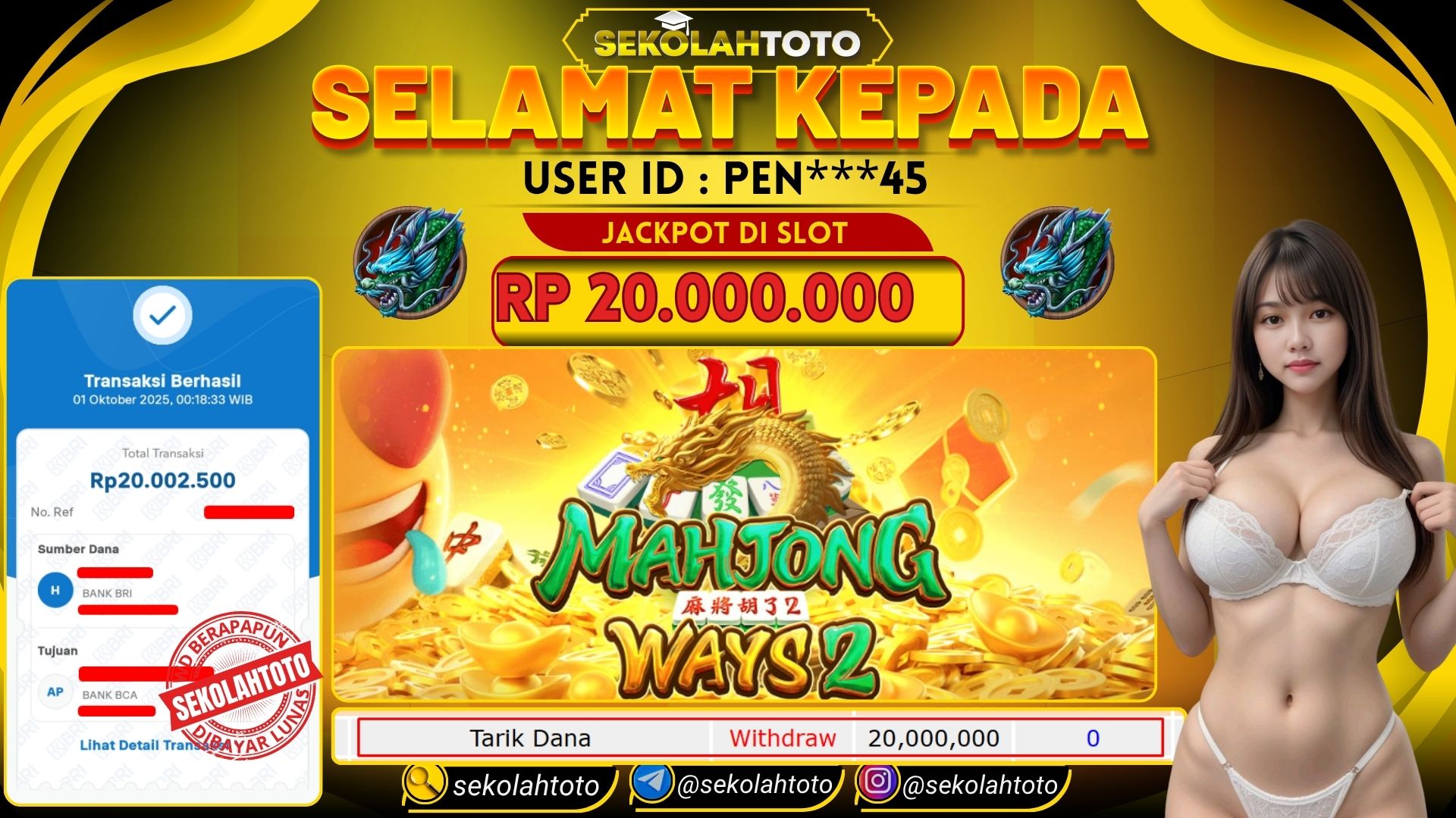BUKTI PEMBAYARAN JACKPOT PGSOFT 1 Oktober 2025 Posted by kepsektoto MAHJONG WAYS 2 RABU , 1 OKTOBER 2025 RP 20,000,000,- Selamat Kepada Pemenang. Salam JP Updated: 1 Oktober 2025 at 00:31 ◀ Prediksi Togel Hongkong dan Bocoran Toto HK Hari Ini BUKTI PEMBAYARAN JACKPOT TOGEL ▶