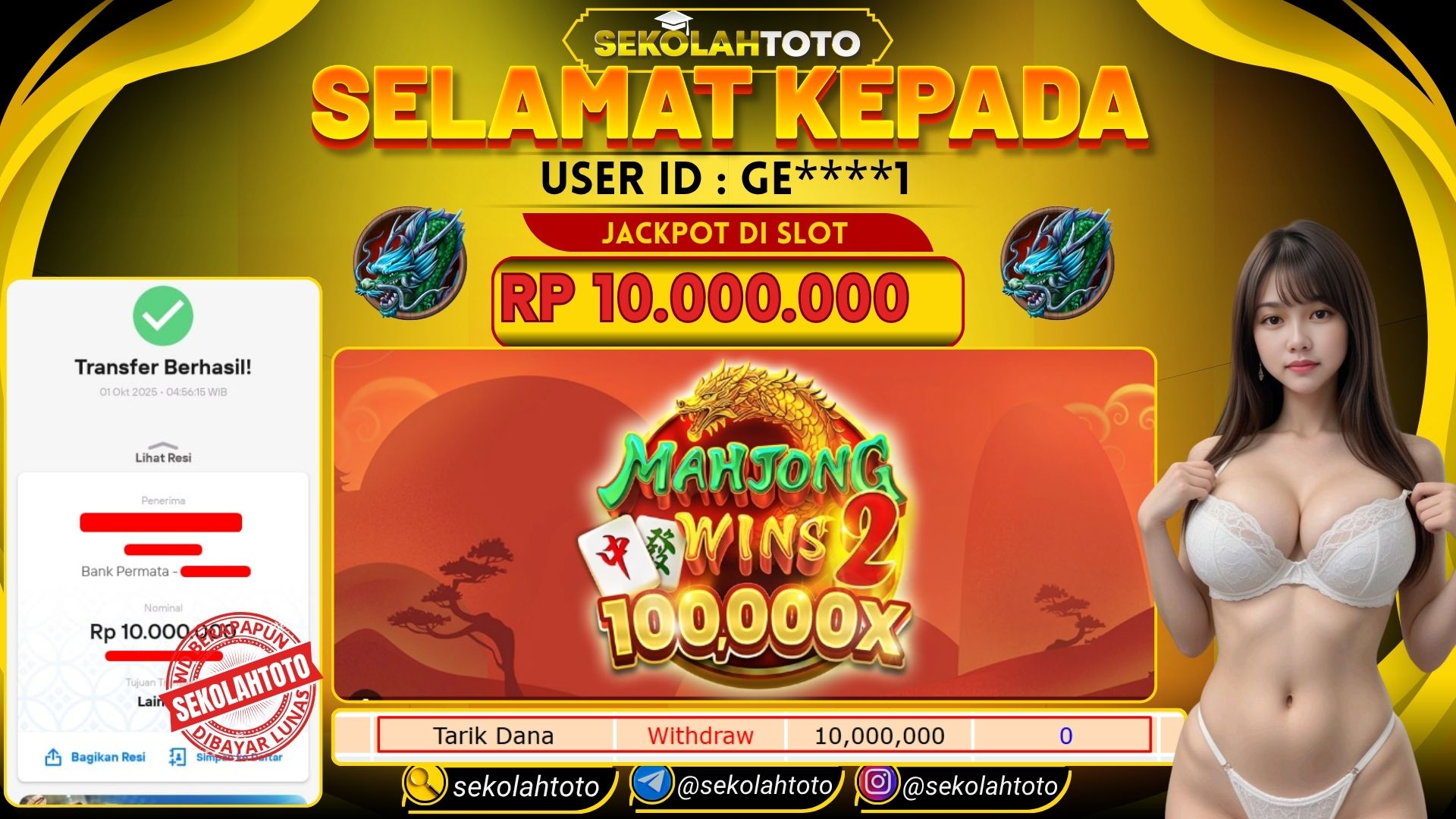 BUKTI PEMBAYARAN JACKPOT PRAGMATIC PLAY 1 Oktober 2025 Posted by kepsektoto MAHJONG WINS 2 RABU , 1 OKTOBER 2025 RP 10,000,000,- Selamat Kepada Pemenang. Salam JP Updated: 1 Oktober 2025 at 08:22 ◀ BUKTI PEMBAYARAN JACKPOT PGSOFT BUKTI PEMBAYARAN JACKPOT PRAGMATIC PLAY ▶
