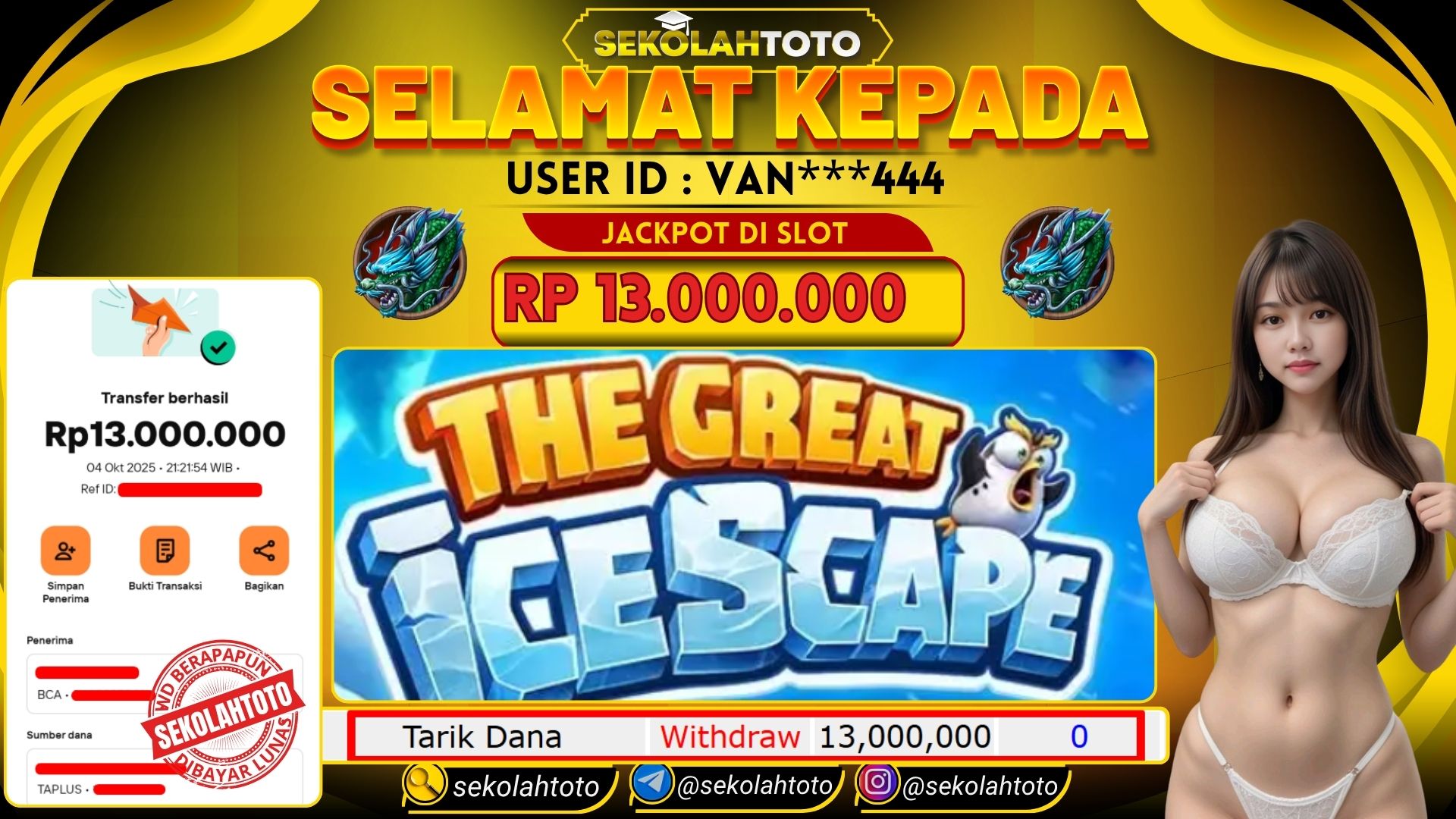 BUKTI PEMBAYARAN JACKPOT PG SOFT 4 Oktober 2025 Posted by kepsektoto THE GREAT ICESCAPE SABTU , 4 OKTOBER 2025 RP 13,000,000,- Selamat Kepada Pemenang. Salam JP Updated: 4 Oktober 2025 at 21:31 ◀ BUKTI PEMBAYARAN JACKPOT PG SOFT Prediksi Togel Bullseye Pools Hari Ini ▶