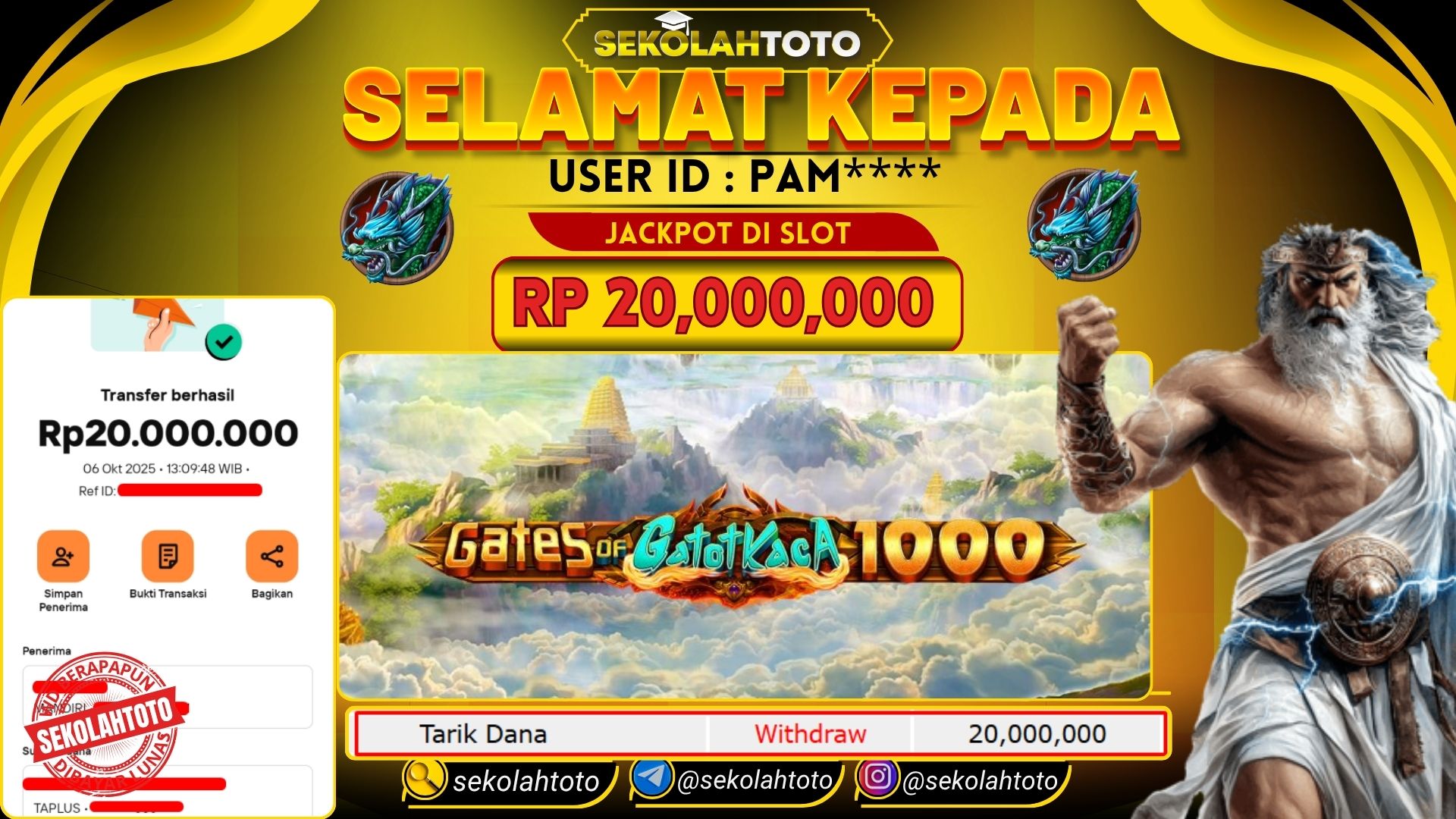 BUKTI PEMBAYARAN JACKPOT PRAGMATIC PLAY 6 Oktober 2025 Posted by kepsektoto GATES OF GATOTKACA 1000 SENIN , 6 OKTOBER 2025 RP 20,000,000,- Selamat Kepada Pemenang. Salam JP Updated: 6 Oktober 2025 at 13:45 ◀ BUKTI PEMBAYARAN JACKPOT PG SOFT Prediksi Togel Bullseye Pools Hari Ini ▶