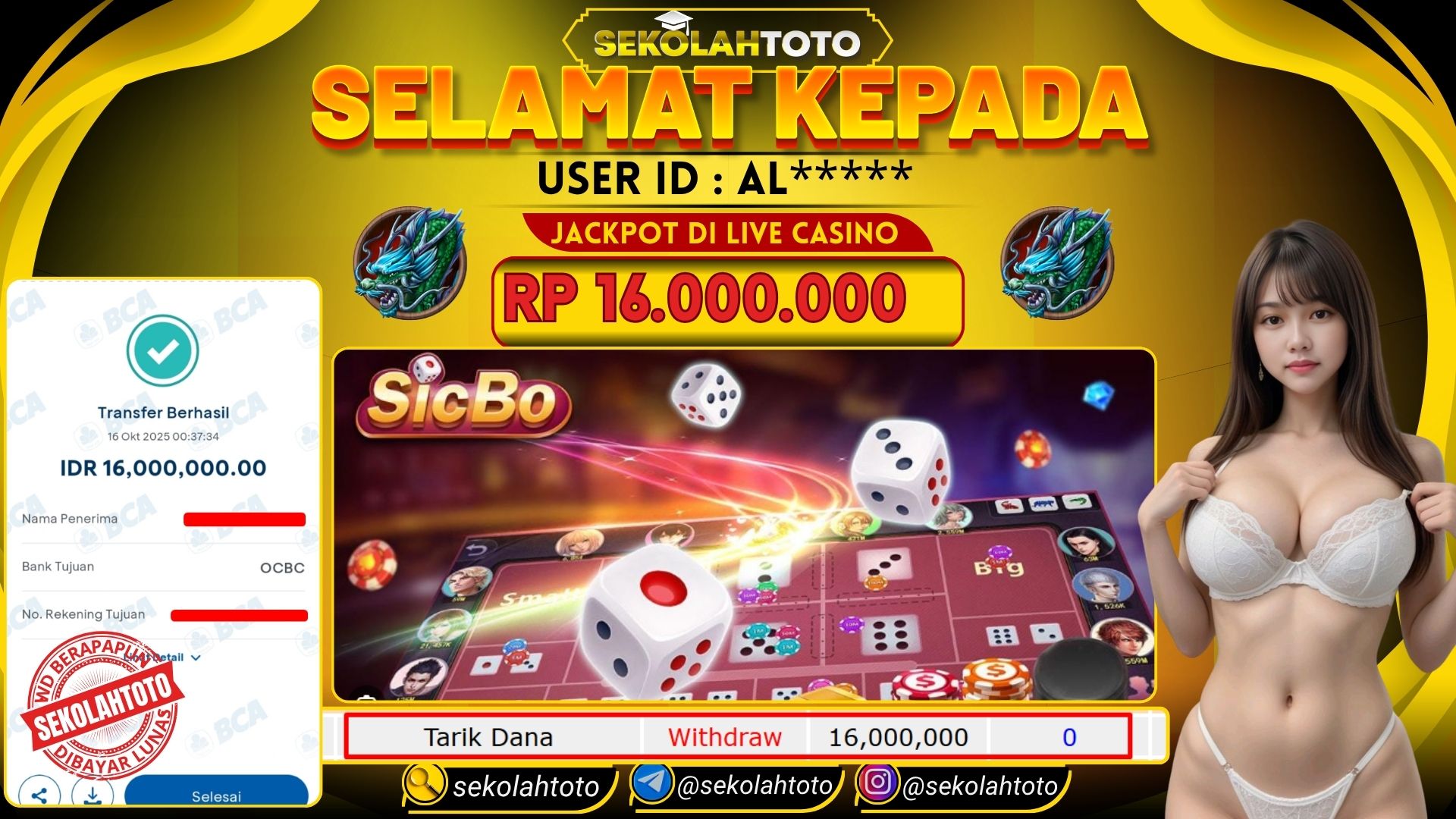 BUKTI PEMBAYARAN JACKPOT LIVE CASINO 16 Oktober 2025 Posted by kepsektoto SICBO KAMIS , 16 OKTOBER 2025 RP 16,000,000,- Selamat Kepada Pemenang. Salam JP Updated: 16 Oktober 2025 at 01:18 ◀ Prediksi Togel Toto Macau Hari Ini BUKTI PEMBAYARAN JACKPOT PG SOFT ▶