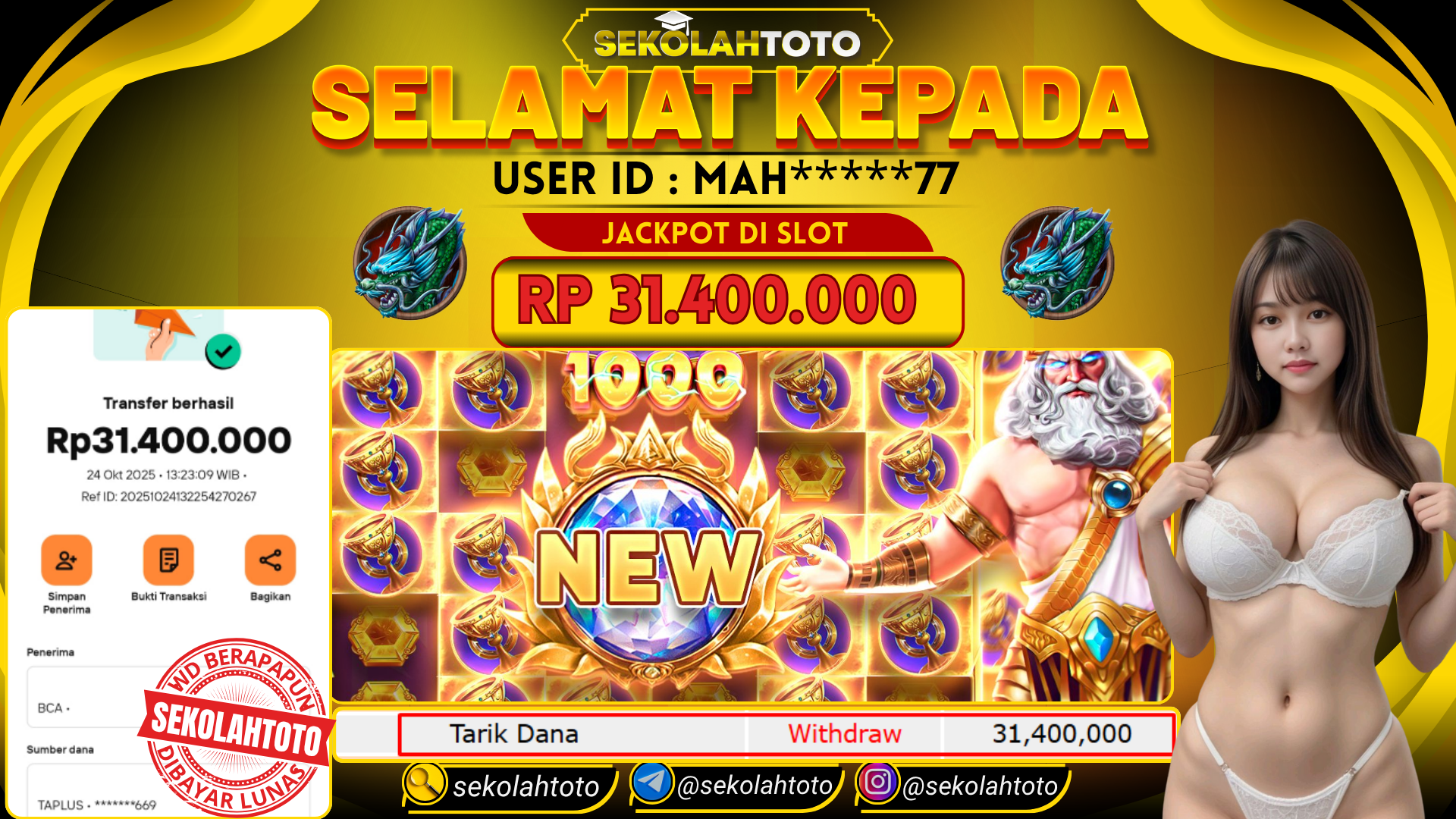 BUKTI PEMBAYARAN JACKPOT PRAGMATIC PLAY 24 Oktober 2025 Posted by kepsektoto Gates Of Olympus 1000 JUMAT , 24 OKTOBER 2025 RP 31,400,000,- Selamat Kepada Pemenang. Salam JP Updated: 24 Oktober 2025 at 13:46 ◀ BUKTI PEMBAYARAN JACKPOT PG SOFT BUKTI PEMBAYARAN JACKPOT PRAGMATIC PLAY ▶