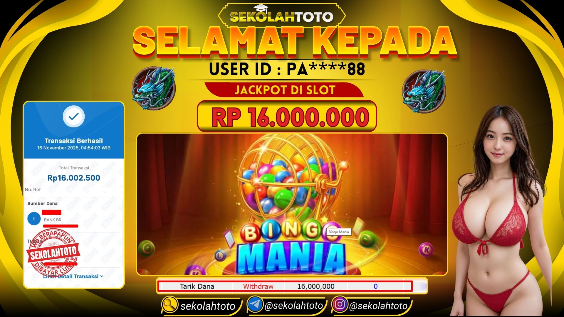BUKTI PEMBAYARAN JACKPOT PRAGMATIC PLAY 16 November 2025 Posted by kepsektoto BINGO MANIA MINGGU , 16 NOVEMBER 2025 RP 16,000,000,- Selamat Kepada Pemenang. Salam JP Updated: 16 November 2025 at 07:28 ◀ BUKTI PEMBAYARAN JACKPOT PRAGMATIC PLAY BUKTI PEMBAYARAN JACKPOT PRAGMATIC PLAY ▶