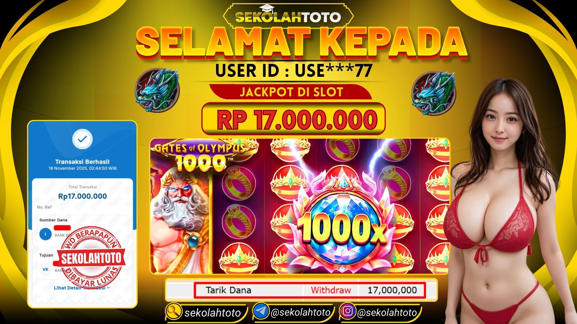 BUKTI PEMBAYARAN JACKPOT PRAGMATIC PLAY 18 November 2025 Posted by kepsektoto GATES OF OLYMPUS 1000 SELASA , 18 NOVEMBER 2025 RP 17,000,000,- Selamat Kepada Pemenang. Salam JP Updated: 18 November 2025 at 03:55 ◀ BUKTI PEMBAYARAN JACKPOT PG SOFT BUKTI PEMBAYARAN JACKPOT PRAGMATIC PLAY ▶