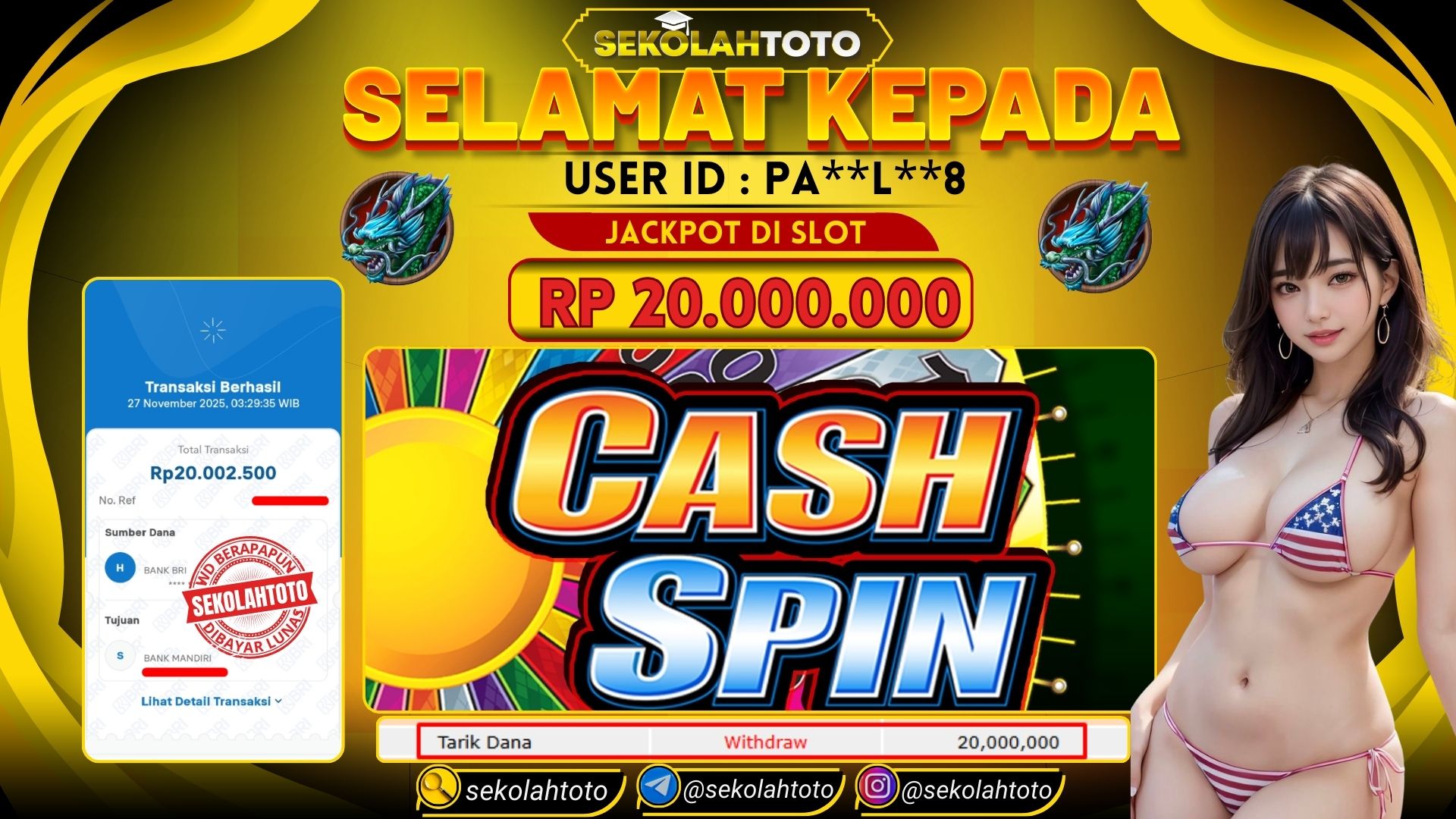 BUKTI PEMBAYARAN JACKPOT IDNSLOT 27 November 2025 Posted by kepsektoto CASH SPIN KAMIS, 27 NOVEMBER 2025 RP 20,000,000,- Selamat Kepada Pemenang. Salam JP Updated: 27 November 2025 at 04:16 ◀ Prediksi Togel Toto Macau Hari Ini Pos Berikutnya ▶