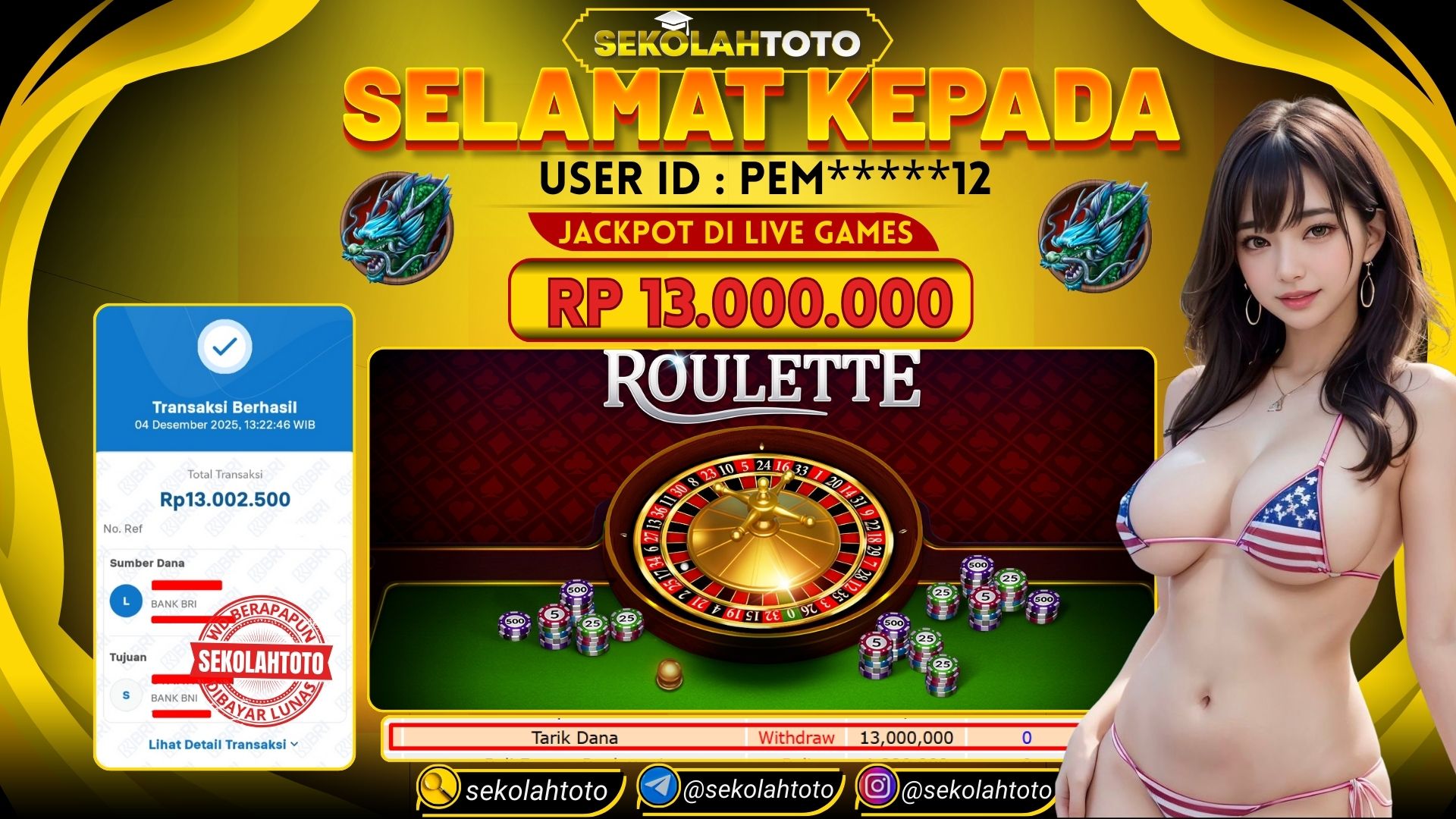 BUKTI PEMBAYARAN JACKPOT IDN LIVE 4 Desember 2025 Posted by kepsektoto EUROPE ROULETTE 1 KAMIS, 4 DESEMBER 2025 RP 13,000,000,- Selamat Kepada Pemenang. Salam JP Updated: 4 Desember 2025 at 17:21 ◀ BUKTI PEMBAYARAN JACKPOT PG SOFT BUKTI PEMBAYARAN JACKPOT PG SOFT ▶