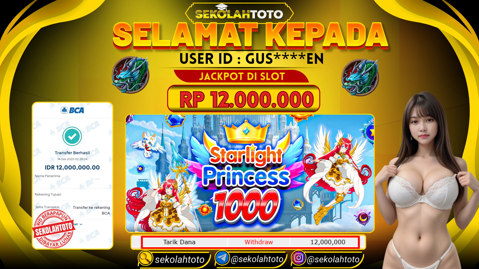 BUKTI PEMBAYARAN JACKPOT PRAGMATIC PLAY 14 Desember 2025 Posted by kepsektoto STARLIGHT PRINCESS 1000 MINGGU, 14 DESEMBER 2025 RP 12,000,000,- Selamat Kepada Pemenang. Salam JP Updated: 14 Desember 2025 at 02:58 ◀ Prediksi Togel Toto Macau Hari Ini BUKTI PEMBAYARAN JACKPOT PG SOFT ▶