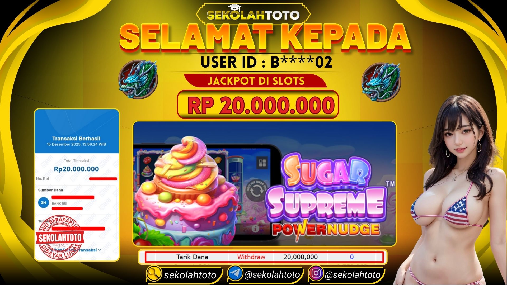 BUKTI PEMBAYARAN JACKPOT PRAGMATIC PLAY 15 Desember 2025 Posted by kepsektoto SUGAR SUPREME POWER NUDGE MINGGU, 15 DESEMBER 2025 RP 20,000,000,- Selamat Kepada Pemenang. Salam JP Updated: 15 Desember 2025 at 14:29 ◀ Prediksi Togel Toto Macau Hari Ini BUKTI PEMBAYARAN JACKPOT PRAGMATIC PLAY ▶