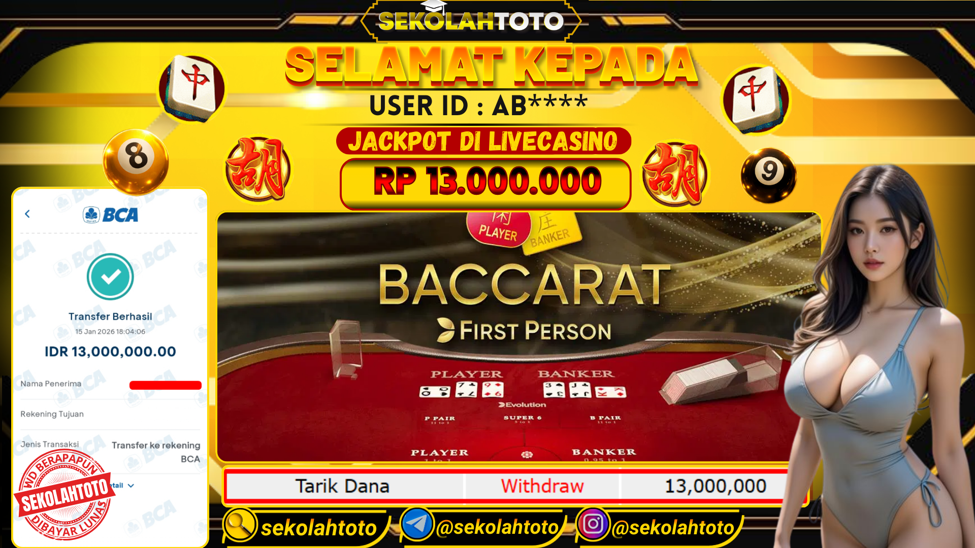 BUKTI PEMBAYARAN JACKPOT PRAGMATIC LIVE 15 Januari 2026 Posted by kepsektoto PP Live Baccarat A KAMIS, 15 JANUARI 2026 RP 13,000,000,- Selamat Kepada Pemenang. Salam JP Updated: 15 Januari 2026 at 18:22 ◀ BUKTI PEMBAYARAN JACKPOT PG SOFT BUKTI PEMBAYARAN JACKPOT PG SOFT ▶