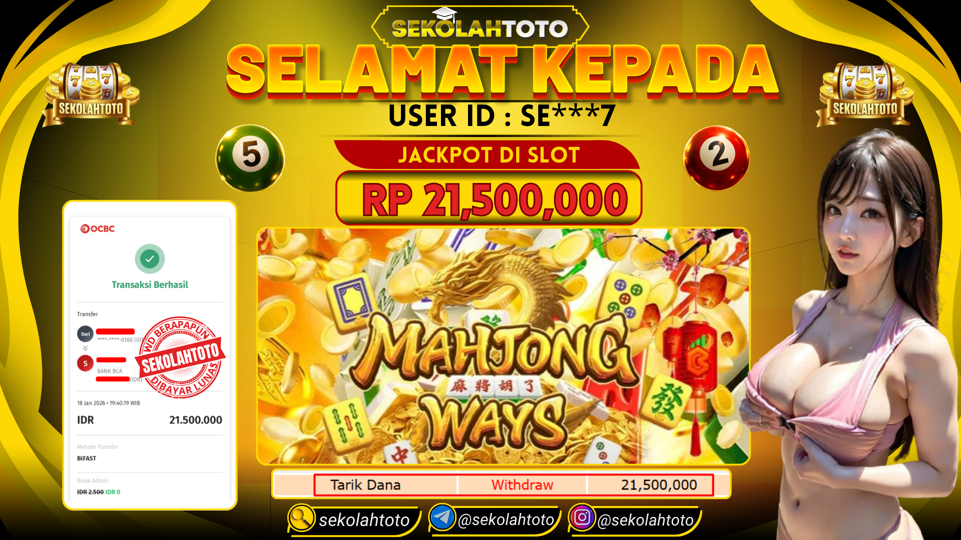 BUKTI PEMBAYARAN JACKPOT PG SOFT 18 Januari 2026 Posted by kepsektoto MAHJONG WAYS MINGGU, 18 JANUARI 2026 RP 21,500,000,- Selamat Kepada Pemenang. Salam JP Updated: 18 Januari 2026 at 19:52 ◀ BUKTI PEMBAYARAN JACKPOT PG SOFT Prediksi Togel Bullseye Pools Hari Ini ▶