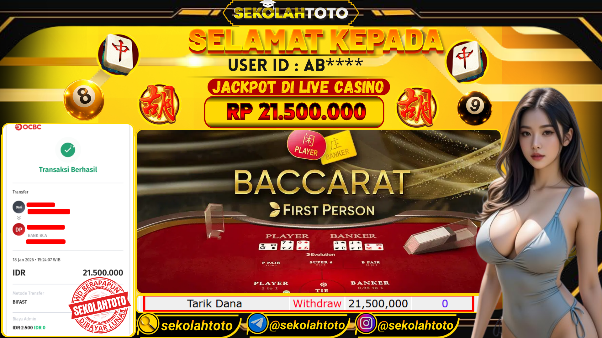 BUKTI PEMBAYARAN JACKPOT PRAGMATIC LIVE 18 Januari 2026 Posted by kepsektoto BACCARAT MINGGU, 18 JANUARI 2026 RP 21,500,000,- Selamat Kepada Pemenang. Salam JP Updated: 18 Januari 2026 at 15:33 ◀ BUKTI PEMBAYARAN JACKPOT PRAGMATIC LIVE BUKTI PEMBAYARAN JACKPOT PG SOFT ▶