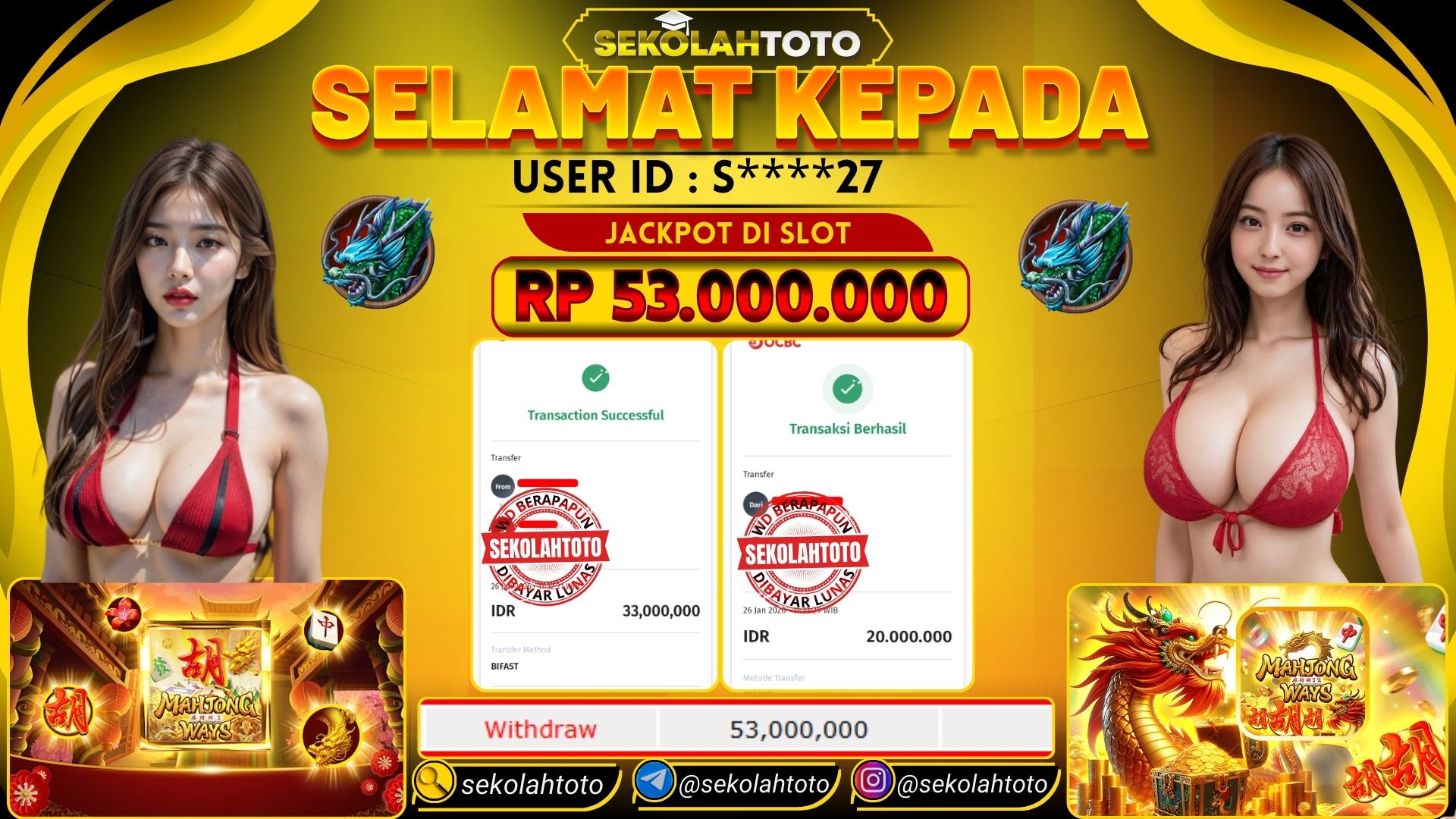 BUKTI PEMBAYARAN JACKPOT PG SOFT 26 Januari 2026 Posted by kepsektoto MAHYONG WAYSÂ SENIN, 26 JANUARI 2026 RP 53,000,000,- Selamat Kepada Pemenang. Salam JP Updated: 26 Januari 2026 at 11:42 ◀ BUKTI PEMBAYARAN JACKPOT PRAGMATIC PLAY BUKTI PEMBAYARAN JACKPOT PG SOFT ▶