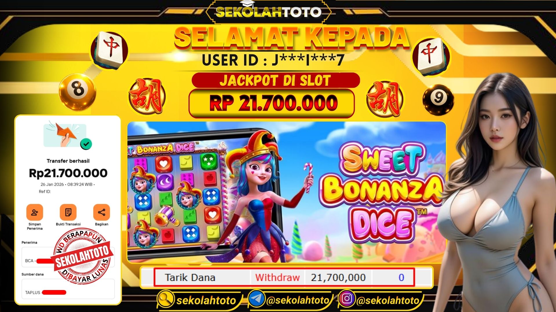 BUKTI PEMBAYARAN JACKPOT PRAGMATIC PLAY 26 Januari 2026 Posted by kepsektoto SWEET BONANZA DICE SENIN, 26 JANUARI 2026 RP 21,700,000,- Selamat Kepada Pemenang. Salam JP Updated: 26 Januari 2026 at 08:56 ◀ BUKTI PEMBAYARAN JACKPOT PG SOFT BUKTI PEMBAYARAN JACKPOT PG SOFT ▶