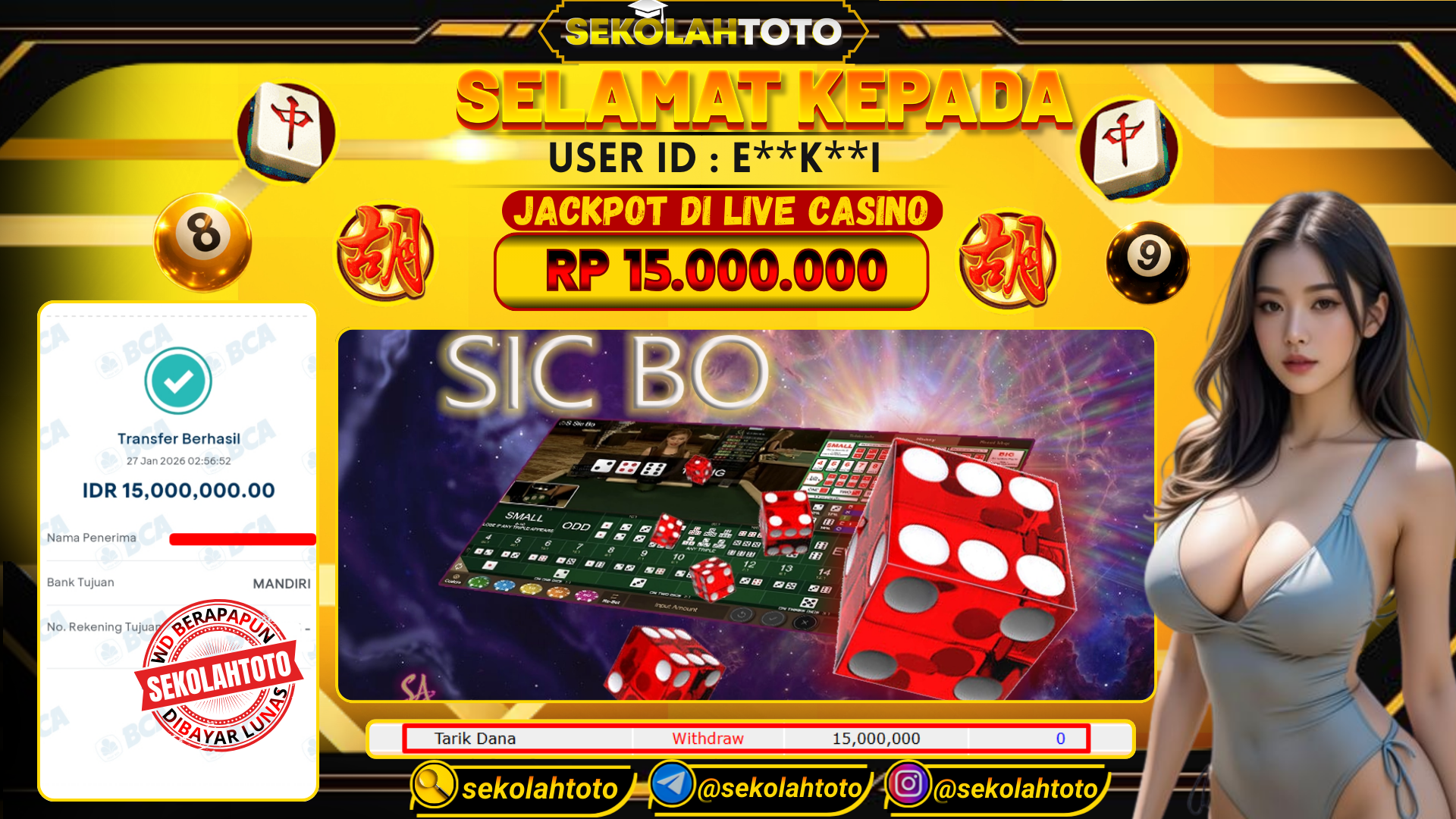 BUKTI PEMBAYARAN JACKPOT LIVE GAME 27 Januari 2026 Posted by kepsektoto SICBO DICE SELASA, 27 JANUARI 2026 RP 15,000,000,- Selamat Kepada Pemenang. Salam JP Updated: 27 Januari 2026 at 05:07 ◀ Prediksi Togel Toto Macau Hari Ini BUKTI PEMBAYARAN JACKPOT PRAGMATIC PLAY ▶