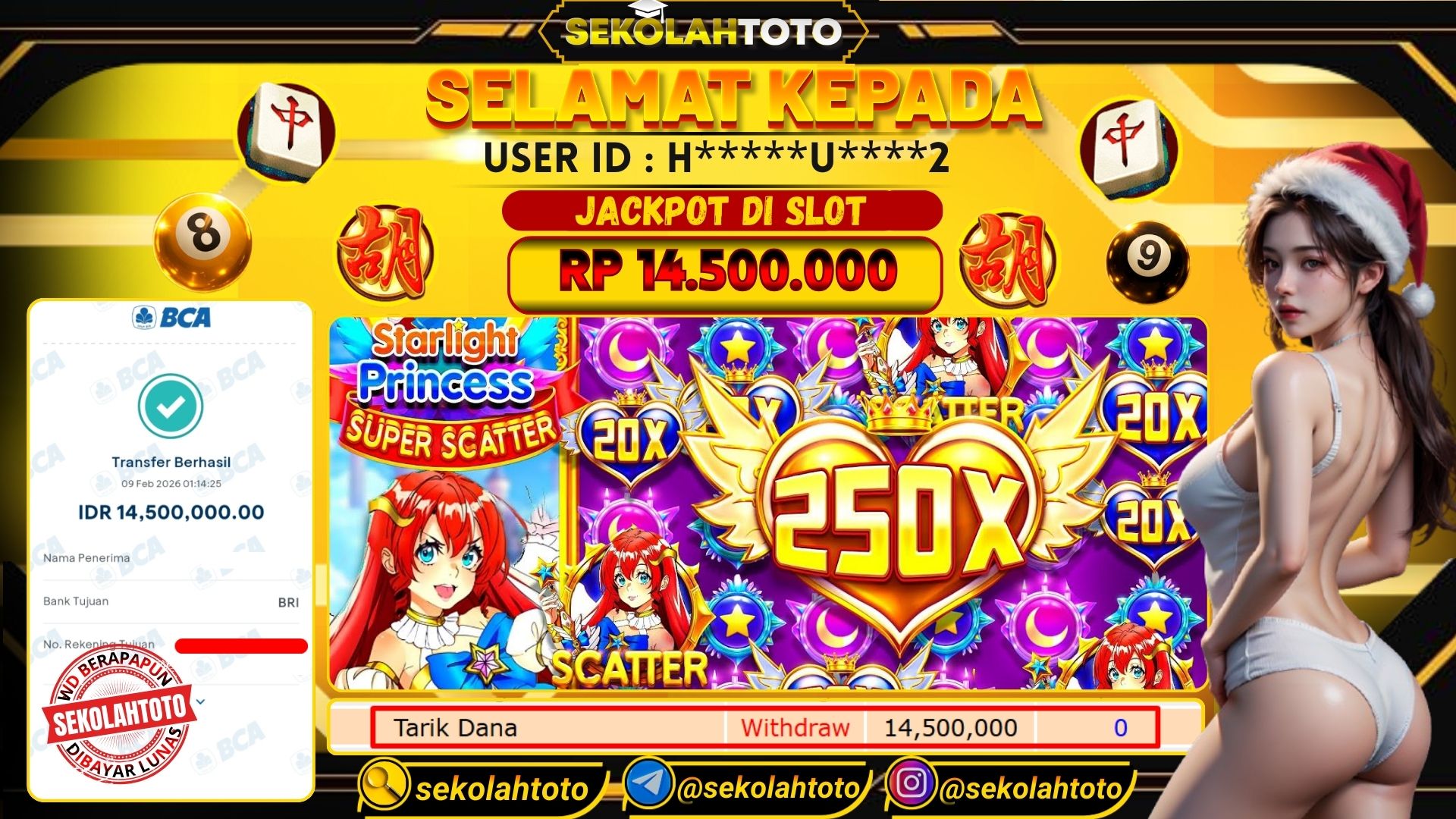 BUKTI PEMBAYARAN JACKPOT PRAGMATIC PLAY 9 Februari 2026 Posted by kepsektoto STARLIGHT PRINCESS SUPER SCATTER SENIN, 09 FEBRUARI 2026 RP 14,500,000,- Selamat Kepada Pemenang. Salam JP Updated: 9 Februari 2026 at 01:29 ◀ Prediksi Togel Singapore | Bocoran Toto SGP BUKTI PEMBAYARAN JACKPOT PG SOFT ▶