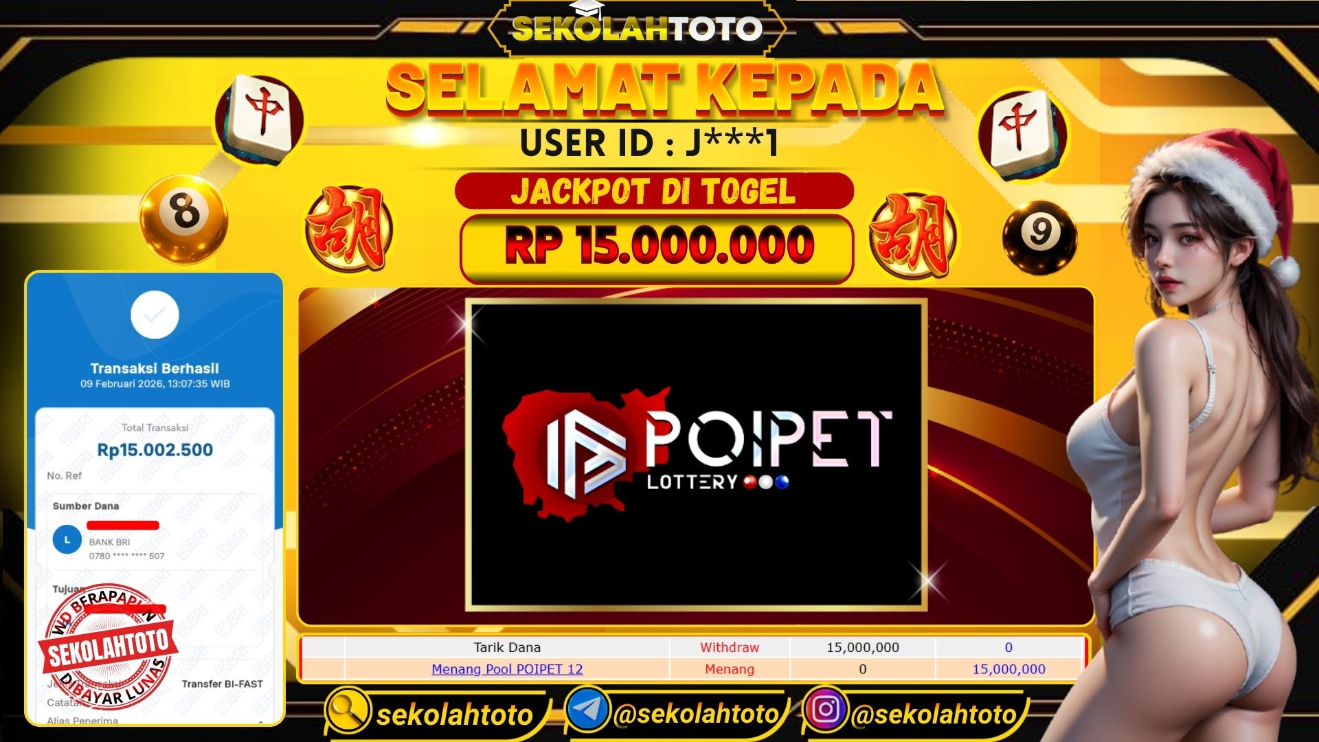 BUKTI PEMBAYARAN JACKPOT TOGEL 9 Februari 2026 Posted by kepsektoto POIPET 12 SENIN, 09 FEBRUARI 2026 RP 15,000,000,- Selamat Kepada Pemenang. Salam JP Updated: 9 Februari 2026 at 13:32 ◀ BUKTI PEMBAYARAN JACKPOT PG SOFT Prediksi Togel Oregon12 Hari Ini ▶
