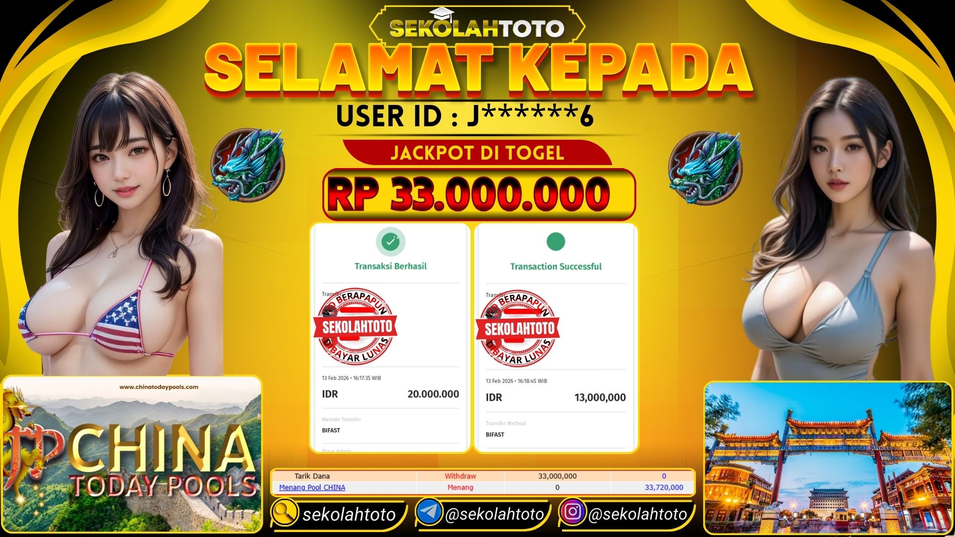 BUKTI PEMBAYARAN JACKPOT TOGEL 13 Februari 2026 Posted by kepsektoto CHINA POOL JUM’AT, 13 FEBRUARI 2026 RP 33,000,000,- Selamat Kepada Pemenang. Salam JP Updated: 13 Februari 2026 at 16:38 ◀ BUKTI PEMBAYARAN JACKPOT PG SOFT Prediksi Togel Bullseye Pools Hari Ini ▶