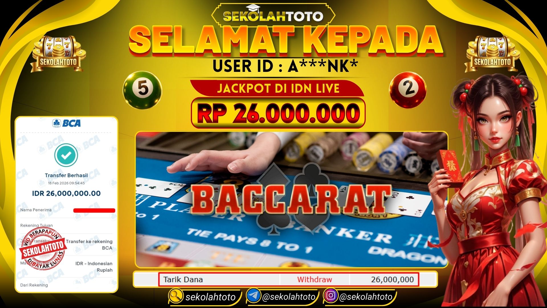 BUKTI PEMBAYARAN JACKPOT IDN LIVE 18 Februari 2026 Posted by kepsektoto BACCARAT RABU, 18 FEBRUARI 2026 RP 26,000,000,- Selamat Kepada Pemenang. Salam JP Updated: 18 Februari 2026 at 10:15 ◀ BUKTI PEMBAYARAN JACKPOT PRAGMATIC PLAY Prediksi Togel Sydney | Bocoran Toto SDY Hari Ini ▶