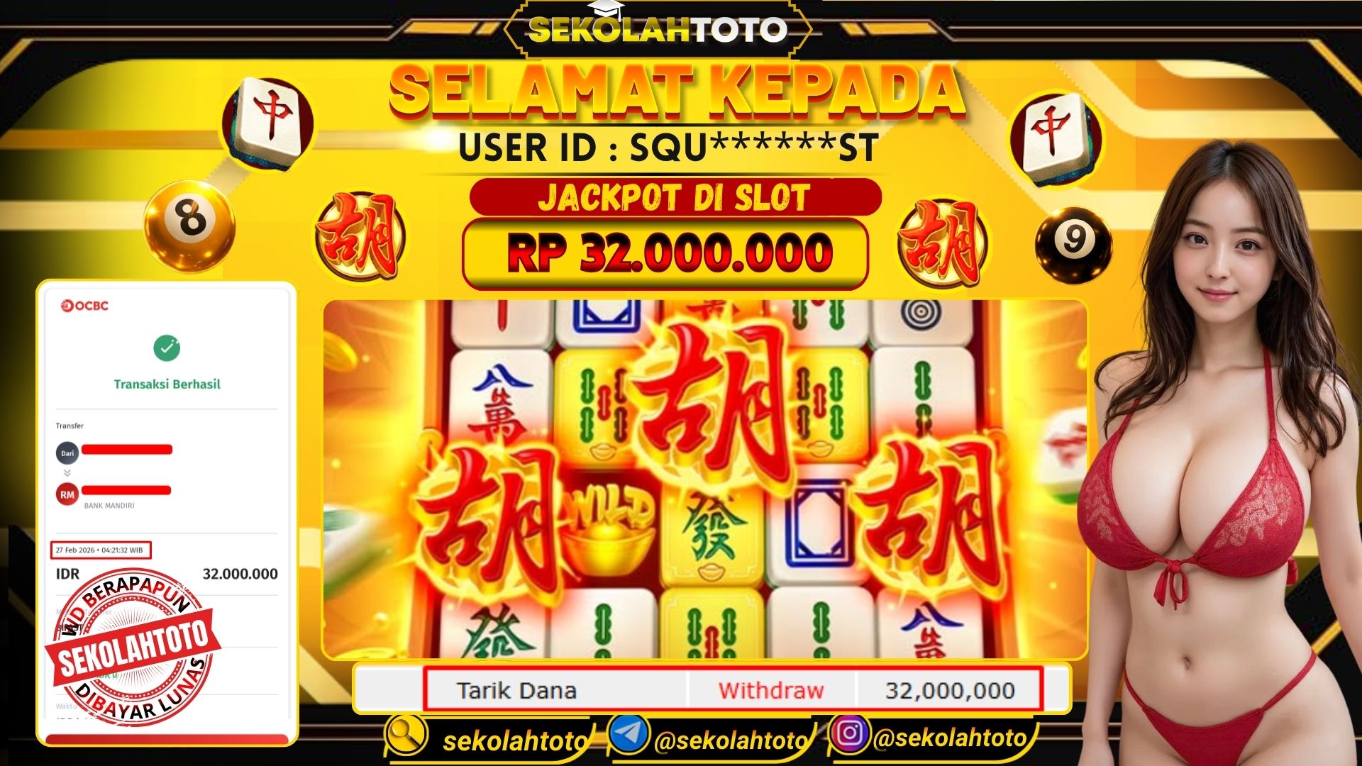 BUKTI PEMBAYARAN JACKPOT PG SOFT 27 Februari 2026 Posted by Admin Sekolahtoto MAHJONG WAYS 2 JUMAT , 27 FEBRUARI 2026 RP 32,000,000,- Selamat Kepada Pemenang. Salam JP Updated: 27 Februari 2026 at 04:45 ◀ BUKTI PEMBAYARAN JACKPOT PG SOFT BUKTI PEMBAYARAN JACKPOT PRAGMATIC PLAY ▶