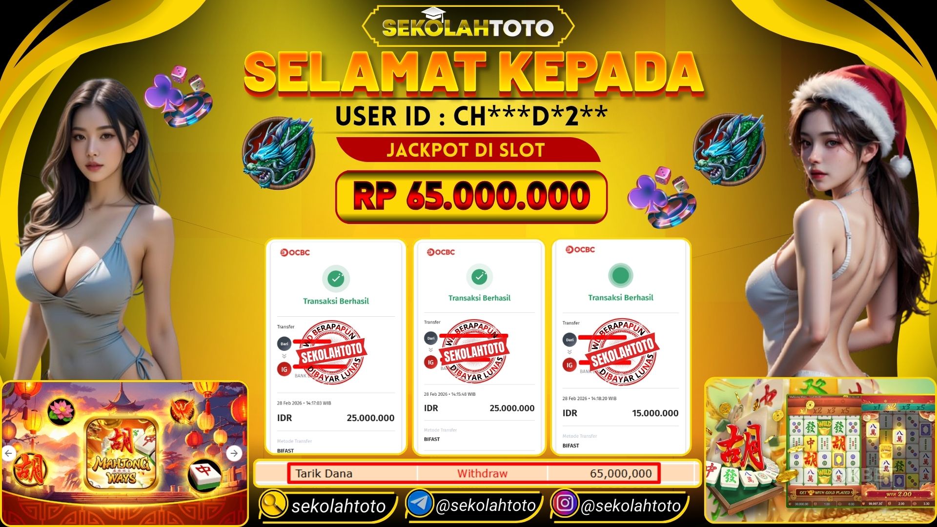 BUKTI PEMBAYARAN JACKPOT PG SOFT 28 Februari 2026 Posted by Admin Sekolahtoto MAHJONG WAYS SABTU, 28 FEBRUARI 2026 RP 65,000,000,- Selamat Kepada Pemenang. Salam JP Updated: 28 Februari 2026 at 14:44 ◀ BUKTI PEMBAYARAN JACKPOT PRAGMATIC PLAY Prediksi Togel Bullseye Pools Hari Ini ▶