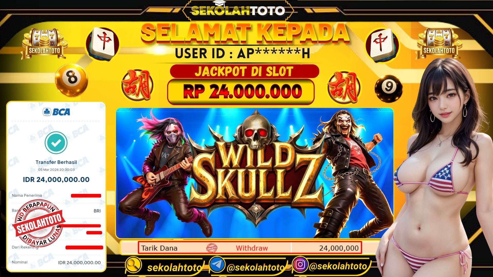 BUKTI PEMBAYARAN JACKPOT PRAGMATIC PLAY 5 Maret 2026 Posted by Admin Sekolahtoto WILD SKULLZ KAMIS, 5 MARET 2026 RP 24,000,000,- Selamat Kepada Pemenang. Salam JP Updated: 5 Maret 2026 at 20:56 ◀ BUKTI PEMBAYARAN JACKPOT TOGEL Prediksi Togel Bullseye Pools Hari Ini ▶