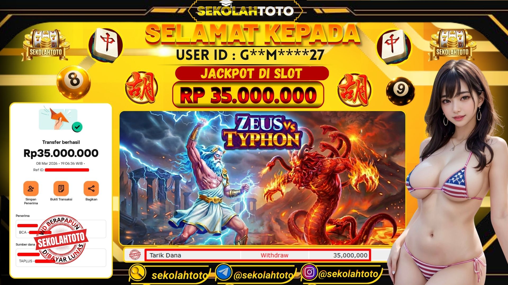 BUKTI PEMBAYARAN JACKPOT PRAGMATIC PLAY 8 Maret 2026 Posted by Admin Sekolahtoto ZEUS VS TYPHON MINGGU, 8 MARET 2026 RP 35,000,000,- Selamat Kepada Pemenang. Salam JP Updated: 8 Maret 2026 at 19:18 ◀ BUKTI PEMBAYARAN JACKPOT PG SOFT Prediksi Togel Bullseye Pools Hari Ini ▶