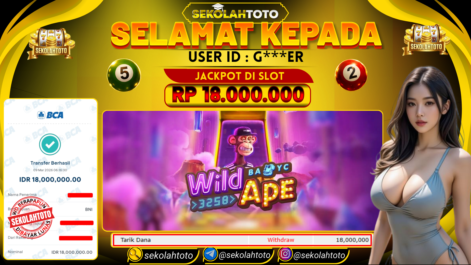 BUKTI PEMBAYARAN JACKPOT PG SOFT 9 Maret 2026 Posted by Admin Sekolahtoto WILD APE SENIN, 9 MARET 2026 RP 18,000,000,- Selamat Kepada Pemenang. Salam JP Updated: 9 Maret 2026 at 07:10 ◀ BUKTI PEMBAYARAN JACKPOT PRAGMATIC PLAY BUKTI PEMBAYARAN JACKPOT PRAGMATIC PLAY ▶