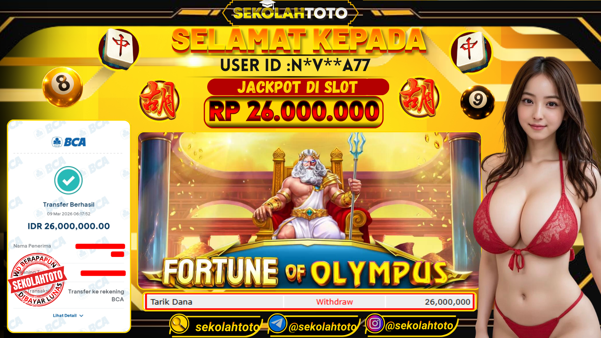 BUKTI PEMBAYARAN JACKPOT PRAGMATIC PLAY 9 Maret 2026 Posted by Admin Sekolahtoto Fortune Of Olympus SENIN, 9 MARET 2026 RP 26,000,000,- Selamat Kepada Pemenang. Salam JP Updated: 9 Maret 2026 at 06:49 ◀ Prediksi Togel Toto Macau Hari Ini BUKTI PEMBAYARAN JACKPOT PG SOFT ▶