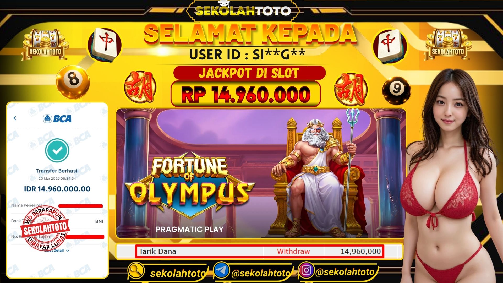 BUKTI PEMBAYARAN JACKPOT PRAGMATIC PLAY 20 Maret 2026 Posted by Admin Sekolahtoto FORTUNE OF OLYMPUS JUMAT, 20 MARET 2026 RP 14,960,000,- Selamat Kepada Pemenang. Salam JP Updated: 20 Maret 2026 at 11:01 ◀ BUKTI PEMBAYARAN JACKPOT PG SOFT BUKTI PEMBAYARAN JACKPOT PG SOFT ▶